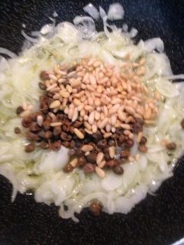 Inserisci anche i pinoli (sempre durante la cottura che dovrà essere a fiamma allegra per circa 10 minuti).