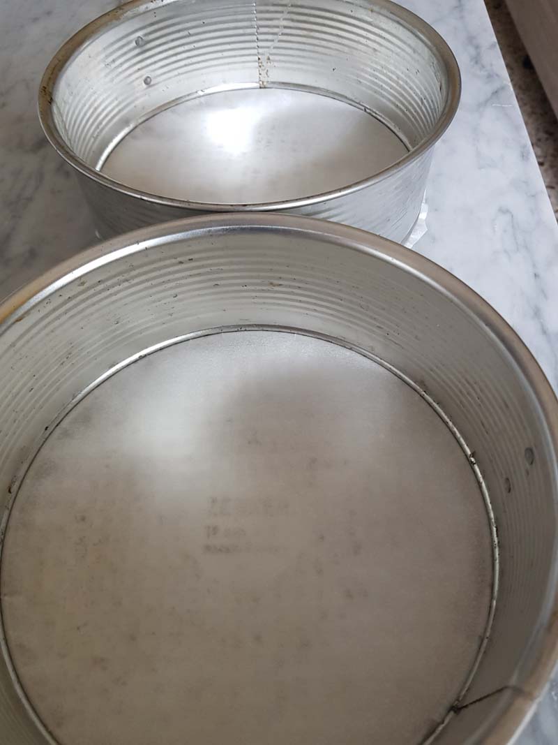 Fodera con la carta forno due stampi (da 16 cm) o uno da 26 cm. Io ho realizzato due pan di spagna.