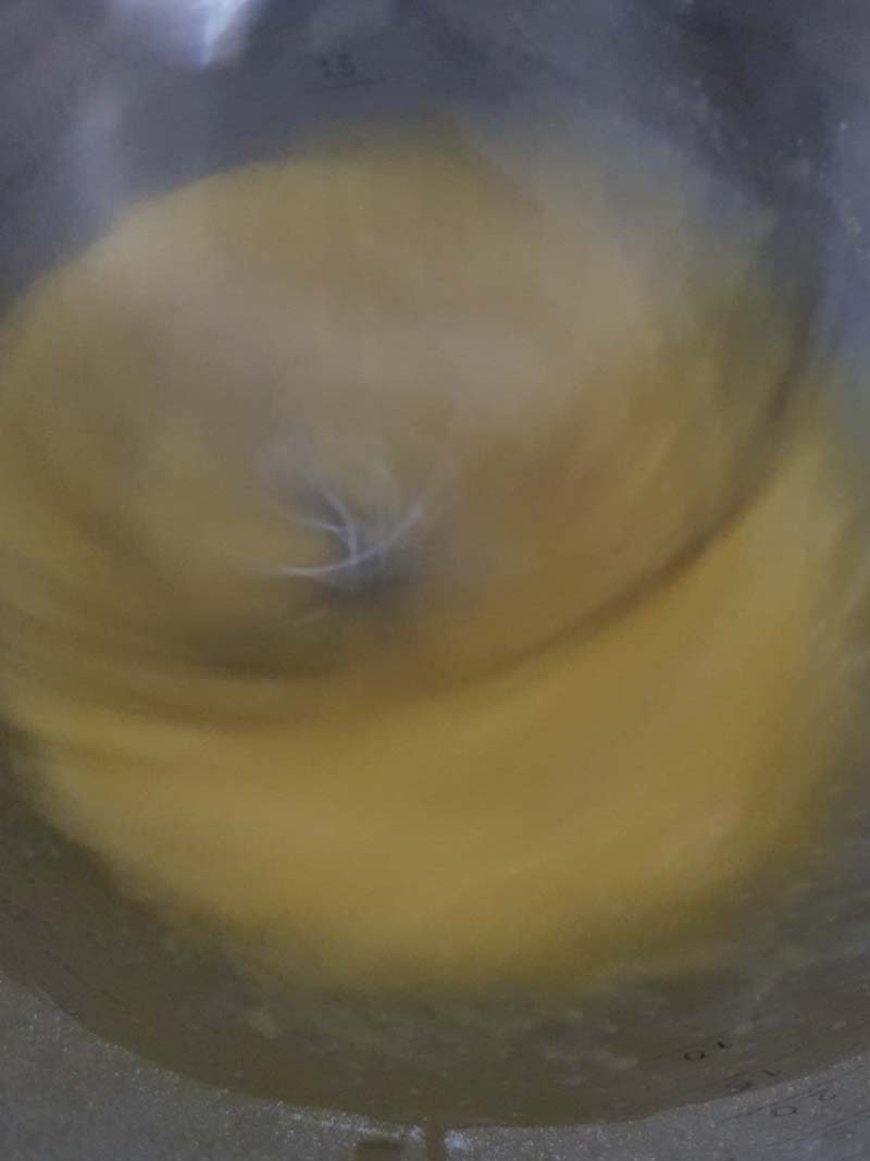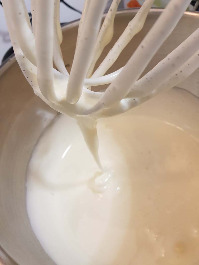 Ecco come si presenterà il composto: chiaro, cremoso e denso al punto che quando estrarrai la frusta, si formerà un filo di impasto.