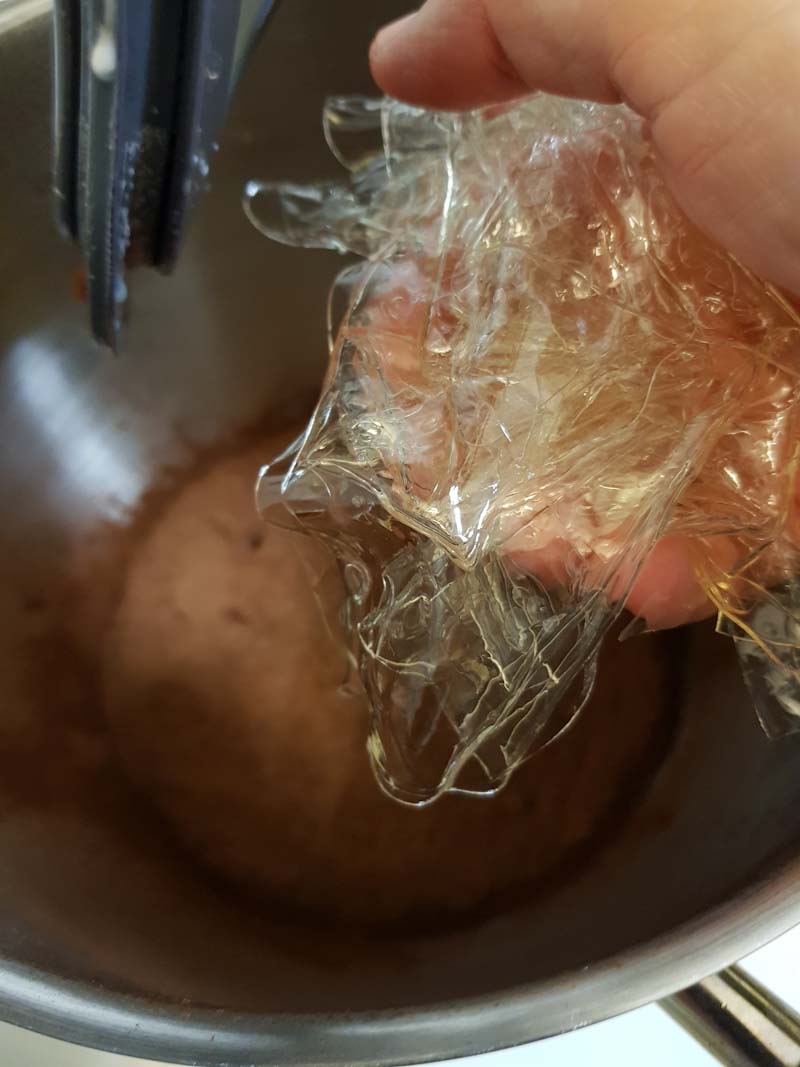 la gelatina ben strizzata. Continua a rimestare portando la temperatura a 102°.